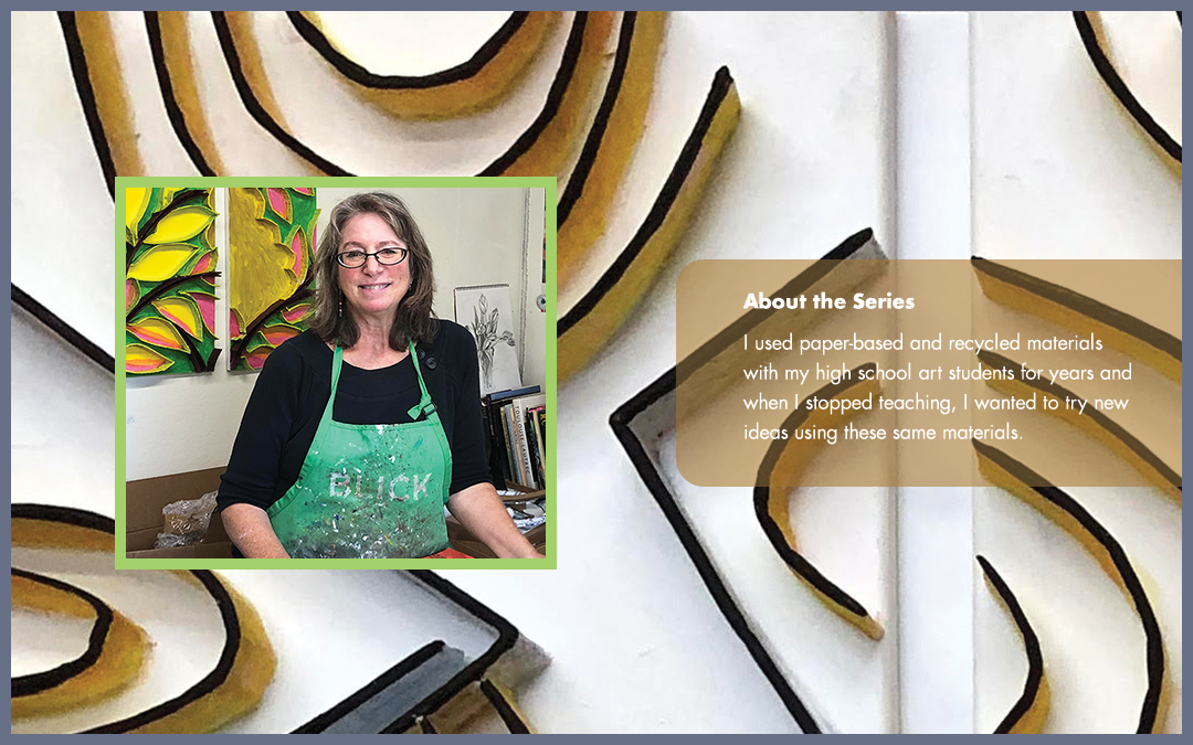 My mixed media art is a unique interplay of three-dimensional color and shapes created from an unusual medium. See About to learn more about my process.